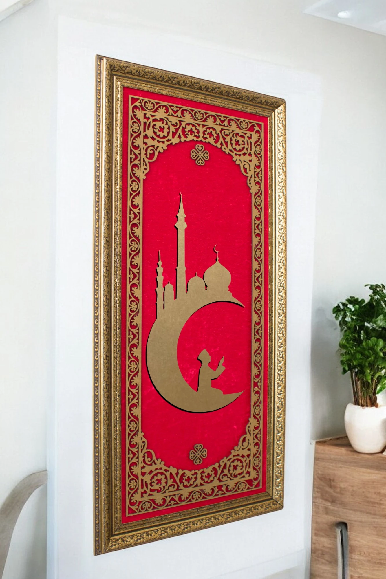 Ay Cami Kaligrafi Hat Sanatı Tablo 40x80 cm